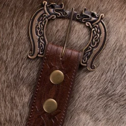 Diese Schnalle ist eine Nachbildung eines Originals von 1450. Es wurde von König Erik von Pommern getragen wurde. Schnallen wie diese wurden zwischen der 2. Hälfte des 15. und der ersten Hälfte des 16. Jahrhunderts getragen. Die Schnalle hat den Text: Hilfe ghot un maria nu Altit“(Gott und Maria sind für immer unsere Helfer).
