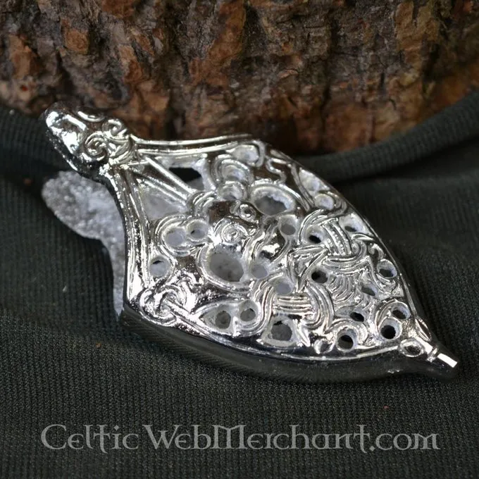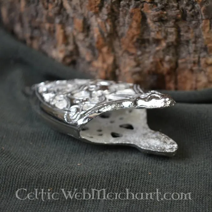 Diese Scheide chape aus dem 10. bis 11. Jahrhundert auf Vorlagen basieren. Die chape ist im Ringerike Stil. Es kann leicht an der Scheide befestigt werden. Die chape aus versilbertes gemacht Messing.