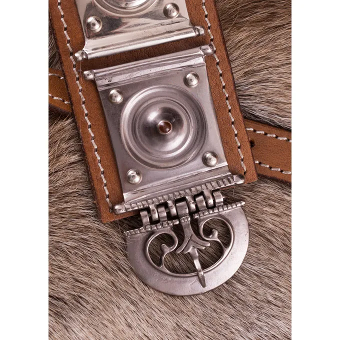 Material: Leder, Messing, Emaille / Stärke: 3 mm / Länge: 134 cm / Für Hüfte Umfang von 100-125 cm / Breite: 6 cm / Gewicht: 920 g / Farbe braun / Auf einem historischen Original basiert