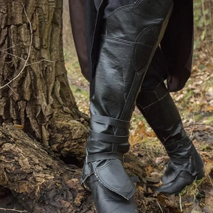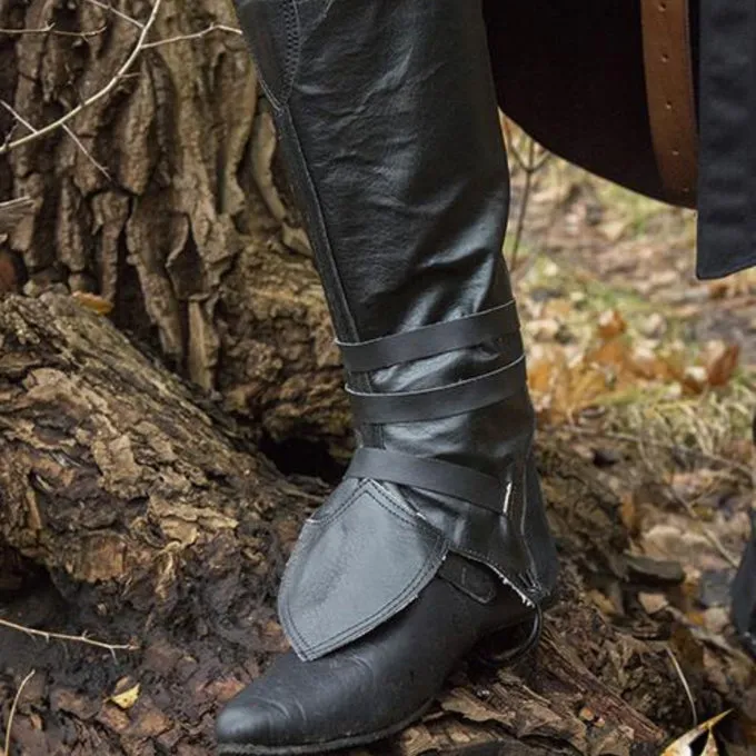 Diese Leder-Gamaschen für Piratenstiefel schützen das Leder vor Schmutz und anderen Schmutz und halten auch die Innenseite der Stiefel trocken. Zum Beispiel können Sie sie auch Schuhe tragen über, so dass es aussieht wie du Stiefel tragen. Sie können sie verwenden, um das Aussehen Ihrer einfachen Modelle von Schuhen und Stiefeln zu verbessern, um sie besondere oder historisch authentisch zu machen. Sie können sie auf die Beine mit 6 Lederriemen mit Messingschnalle befestigen, passen sie jeden Schuh oder Stiefel, weil Sie sie auf Ihre Größe mit den Riemen einstellen kann.