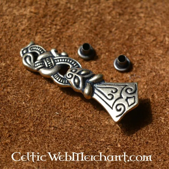 Diese Gürtelendbeschlag basiert auf einem Original aus dem 11. Jahrhundert gefunden in Gotland (Schweden). Ähnliche Ende wurden auch auf der Ost Meerküste in Russland gefunden. Sie wurden von u.a. verwendet die Wikinger aus dem Seegebiet Ostsee, die Rusvikings. Diese Gürtelendbeschlag ist im Borre-Art-Stil eingerichtet.
