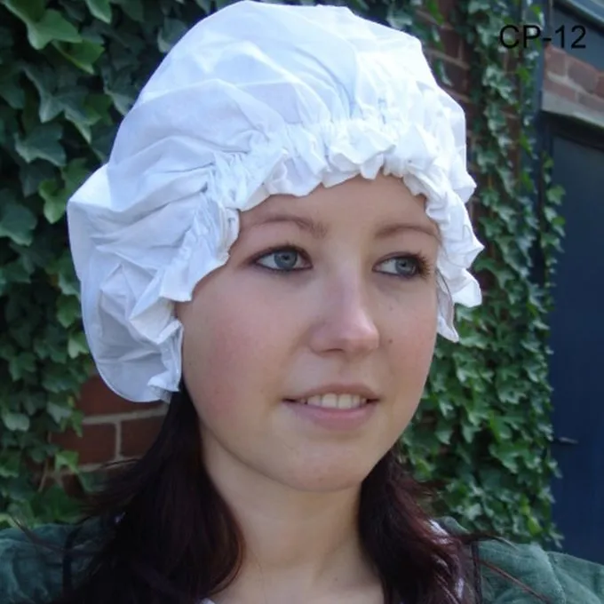 Eine stilvolle Baumwollkappe basierend auf dem 17. Jahrhundert niederländischen Malerei. Caps wie diese wurden in ganz Europa bis ins 18. Jahrhundert getragen. Abgesehen davon, dass ein Modeartikel, hergestellt diese Kappen sicher, dass die Haare einer Frau nicht ihr Tagesgeschäft behindern könnten. Diese Kappe ist in den Farben schwarz, rot, grün, natürlich und weiß.