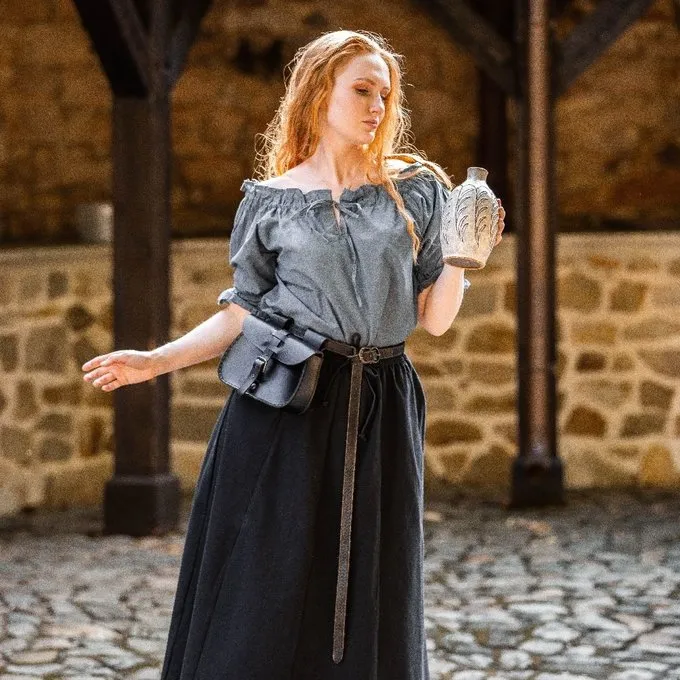 Dieser Rock aus einem schweren Baumwoll-Leinen-Mix und die Taille hat ein elastisches Band für eine gute passende Größe aus. Es ist erhältlich in den Farben schwarz, creme, grün, braun und rot in den Größen S-M, L-XL und XXL.
