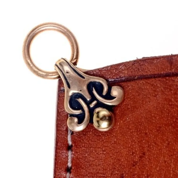 Dieser Beschlag basiert auf einem 9. bis 10. Jahrhundert Original in der Wikingerstadt Birka ausgegraben. Diese Leuchte wurde auf Messers Scheide verwendet. Der Beschlag wurde verwendet, um die Scheide an das Band mit einem Gurt zu befestigen.
