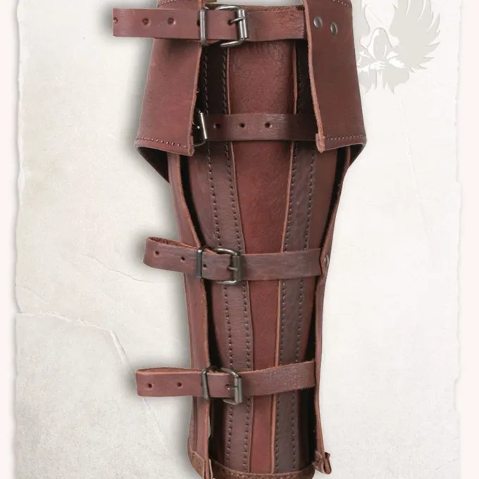 Material: Leder und Messing / Farbe braun / Größe: S & L / Lieferung: Paar / Auf einem historischen Original basiert