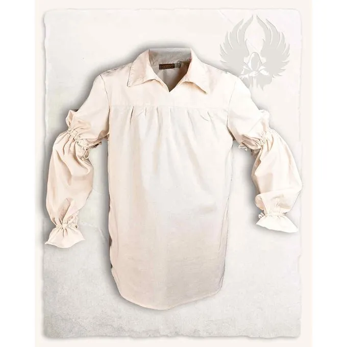 Das Tilly -Shirt wird nach historischen Mustern hergestellt. Der breite, verschwenderische Schnitt der Ärmel kann an zwei Punkten mit Schnürsenkel angepasst werden: am Ellbogen und am Handgelenk. Binden Sie sie, wie Sie ein Sommerhemd für warme Temperaturen bekommen möchten. Die leichte Baumwolle ist langlebig, weich an die Berührung und transportiert die Luftfeuchtigkeit vom Körper weg, wodurch es gut geeignet ist, als Unterhemd zu tragen. Der breite Kragen und die Federungen auf den Manschetten ermöglichen es, für eine Vielzahl von Charakteren zu verwenden – sei es einfacher Bauern, Piraten, Händler, Schurken oder Adliger: Dieses Shirt ist eine perfekte Grundlage für viele Kostüme. Perfekt für ein LARP -Versammlung oder ein mittelalterliches Festival.