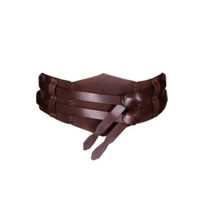 Dieser schöne mittelalterliche Gürtel ist aus hochwertigem pflanzlich gegerbtem Leder. Die Oberfläche und Kanten sind poliert und mit einer hellen Farbe Finish versehen, die dem Leder seines charakteristischen Used-Look verleiht. Der Gürtel hat schöne Knotenmuster und ist mit Messingnieten verziert. Dieser Gürtel kann sowohl von Männern und Frauen getragen werden. Ob als Wikinger, Piraten oder einfach nur im Alltag, gibt dieser Gürtel jedes Kostüm oder Outfit das gewisse Extra.