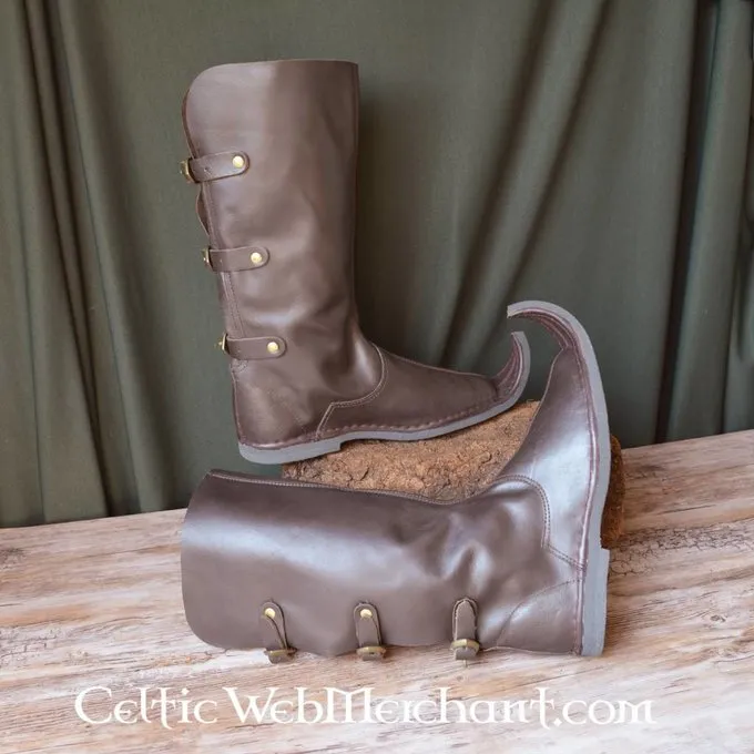 Diese Art der mittelalterlichen Stiefel wurde aus dem zweiten Teil des 13. Jahrhunderts getragen. Im 15. Jahrhundert wurde dieser Stiefel so beliebt, dass die diskutierte Poulaine Gesetze in 1450. eingeführt wurden geregelt, diese Gesetze, die Länge der poulaines und den Grad der Krümmung der Nase. Im Jahr 1463 wurde es in Edward IV England verboten für die Bürger, Ritter, Knappen und Adlige poulaines mit einer Nase länger als 2 Zoll zu tragen.