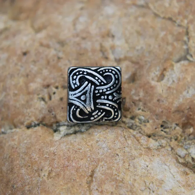 Der Viking Gürtelbeschlag ist im Borre-Art-Stil (825-970) hergestellt und basiert auf einem Original-Fitting in der Handelsstadt Viking ausgegraben Birka. Der Beschlag zeigt einen gespiegelten Knoten und eine dreieckige Form. Es kann auch für die Dekoration Ledertaschen oder sogar Schuhe verwendet werden. Es misst 1,7 x 1,6 cm und ist silberfarben oder messingfarben.