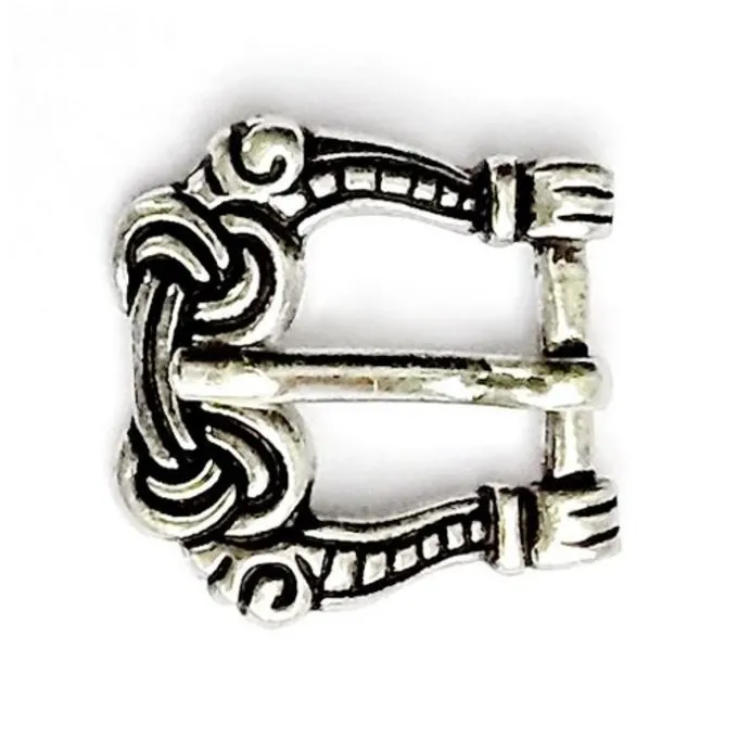 Dies ist ein Nachbau einer original Gürtelschnalle aus einem Wikingergrab aus dem neunten bis zehnten Jahrhundert. Es ist im Borre Kunst Stil (825-970). Die Schnalle ist für Gürtel von 1,5 cm breit geeignet. Der Borre Stil ist typisch für seine geometrischen Mustern und zoomorphic Formen: das Greif-Tier ein wiederkehrendes Motiv war. Diese besondere Schnalle scheint eine Kombination aus beidem zu sein. Es zeigt ein geometrisches Muster, die auf beiden Seiten der Schnalle gespiegelt wird, aber es zeigt auch die markanten vier Finger greifen Hände typisch für den Borre Stil. Ebenfalls typisch für den Borrestil ist ëhorror vacuië, wörtlich: Angst vor der Leere. Jeder verfügbare Raum dieser Schnalle folglich mit einem Muster gefüllt ist, gibt es eine Abwesenheit von Hintergrund.